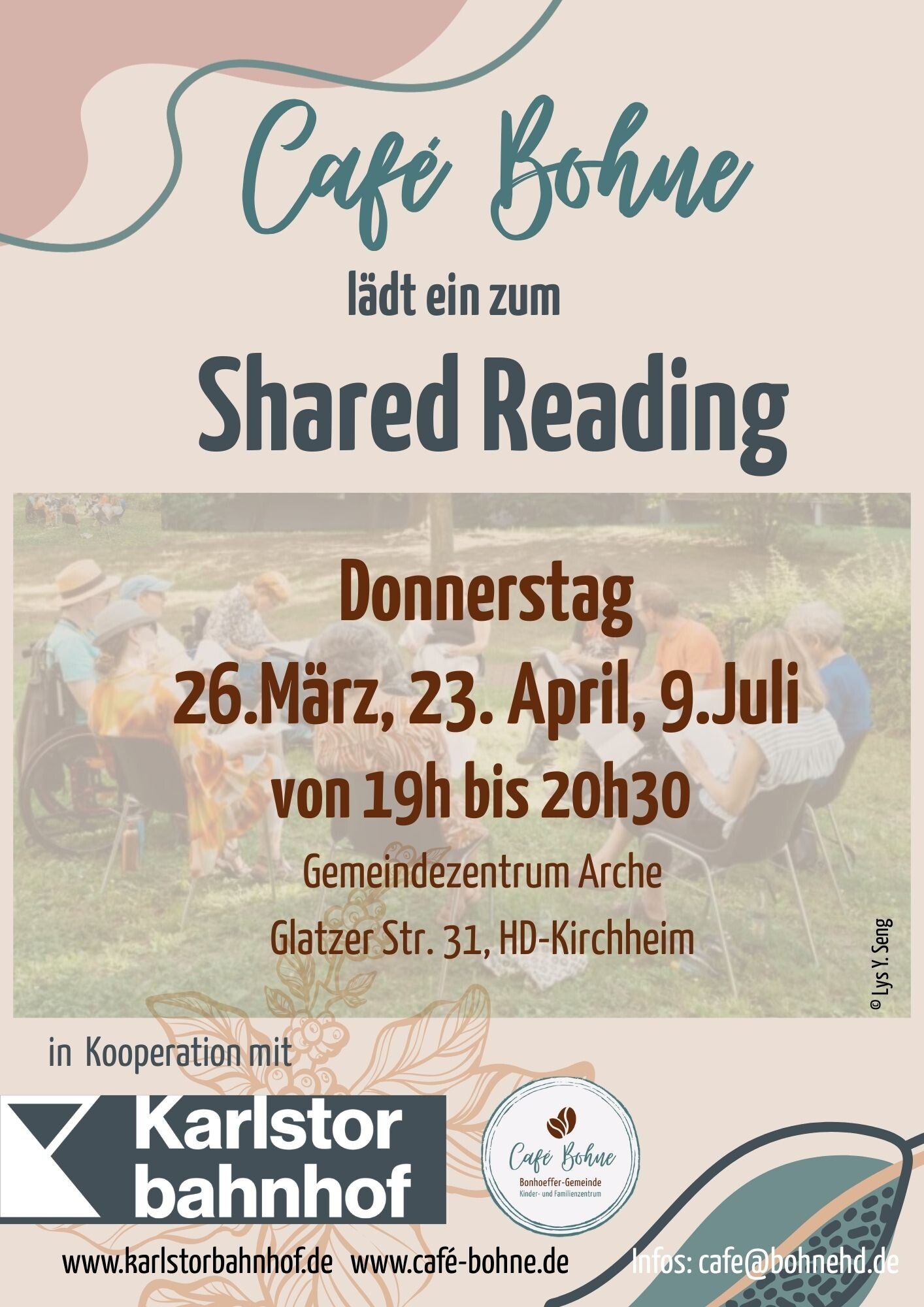 Beim Shared Reading im Café Bohne kommen Menschen zusammen, die sich fürs Lesen interessieren, aber nicht alleine lesen möchten. Ein Vorleser oder eine Vorleserin nimmt uns mit auf eine Reise durch ausgewählte Texte. Anschließend tauschen wir uns über das Gelesene aus – ganz zwanglos und offen für alle Eindrücke. Es ist eine wunderbare Gelegenheit, neue Perspektiven zu entdecken und die Freude am Lesen zu teilen.